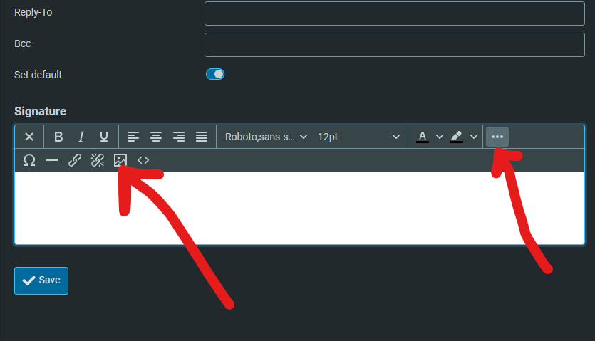 6. For a designed email signature, click that picture icon under signature.