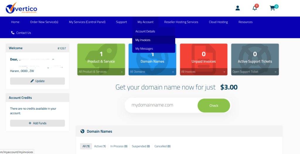 4. Click on “My Account” to edit Account Details. You can also check for upcoming Invoices under “My Invoices”.
