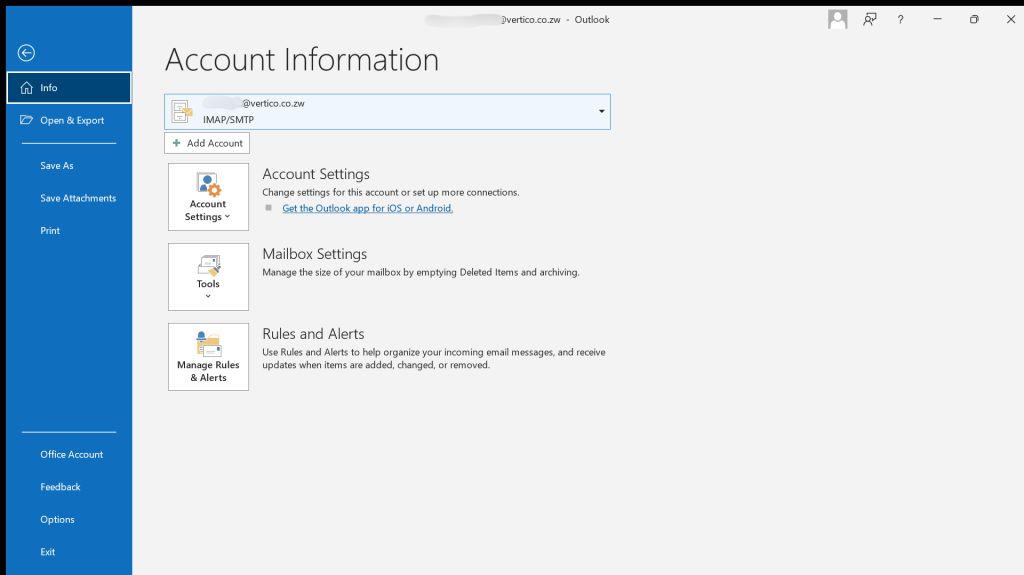 3. Under Account Information make sure the email that you want to fix is selected.