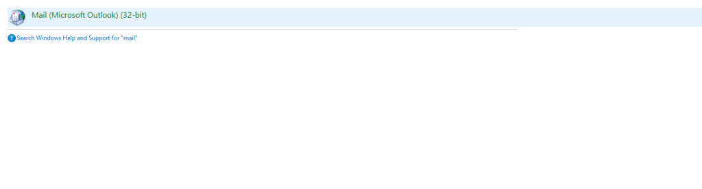 b. In Control Panel, click the search box and search for MAIL and open it.