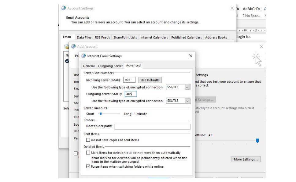 g. Click more settings and navigate to the Outgoing Server Tab.